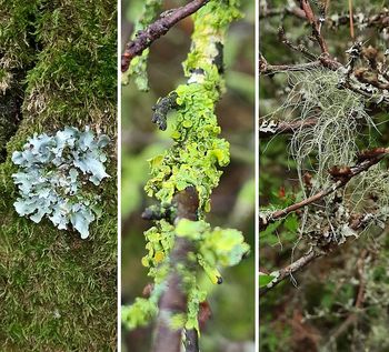 korstmossen kunnen bladvormig (links, Renkumse beekdal), korstvormig (midden, Wageningen) of vertakt (rechts, gevonden in Noorwegen) zijn