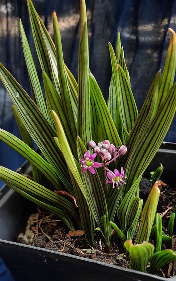 Vijf jaar geleden waren wij op vakantie in Engeland. Dat was in de hete en droge zomer van 2018. We deden een rondje tuinen en kwekerijen in Norfolk en Suffolk en een van de eerste tuinen die we bezochten was Bressingham Steam Museum & Gardens in Diss. Daar bleven we staan bij een bijzonder plantje dat ons totaal onbekend voorkwam. We zagen een groepje lange en smalle gestreepte blaadjes. Het leek wel een beetje op smalle weegbree, maar dan met glad gestreept blad. Gelukkig stond er een naambordje bij, ‘Ledebouria cooperi’. We namen een foto mee naar huis en zochten naar dit plantje bij elke Nederlandse kwekerij waar we kwamen, maar zonder succes. Tot deze zomer, de tuinmarkt in Hernen. Volkomen onverwacht stond daar een kweker die het plantje aanbood. Hij zei erbij dat het geschikt was voor de rotstuin, mits niet te droog maar wel goed gedraineerd. De plant zou matig winterhard zijn. Even verderop stond nog een kraam die het plantje ook aanbood. We gingen dus met twee potjes naar huis. Een van de plantjes stond in bloei – zie foto.