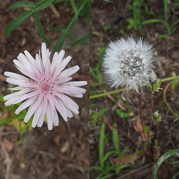 Wie had gedacht dat paardenbloemen ook babyroze kunnen zijn? Of eigenlijk, dat er planten zijn die erg op paardenbloemen lijken, maar dan met roze bloemen? Dat bestaat en deze schoonheid heet Crepis rubra. Ik vond de zaden op internet, ze stellen niet veel voor, het zijn net heel dunne naaldjes. Maar ze kiemden als de beste! Al gauw kon ik meerdere kiemplanten verspenen en opkweken. Deze leken veel op jonge paardenbloemplanten. Zodra ze groot genoeg waren zette ik ze op een zonnig plekje op De Eng. Daar gingen ze al snel bloeien, mede door het warme en droge weer. En ze vormden ook zaad wat ik liet zitten omdat ik wilde dat ze zich uitzaaiden, en omdat ik ook zelf nieuw zaad wilde oogsten. De uitgebloeide bloemen veranderden in bolletjes zaadpluis met van die dunne naaldzaadjes eronder. Missie geslaagd! Ze bloeiden helaas niet heel lang, misschien doordat ik ze zaad liet vormen, en anders door de droge zomer. Maar wat waren ze mooi! Hopelijk volgend jaar genoeg zaailingen. Het enige probleem wordt dan hoe deze te onderscheiden van de jonge paardenbloemen.