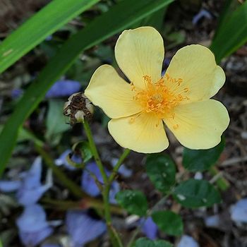 In onze tuin proberen ook wij wat te doen voor de insecten door vooral bloemen te gebruiken die veel stuifmeel en nectar produceren. Soms zijn dat inheemse soorten zoals knoopkruid, maar er zijn ook rozen die voor dat doel geschikt zijn. Je kunt dan denken aan rassen met open, meestal enkele bloemen. ‘Tottering by Gently’ (letterlijk vertaald: ‘Kalmpjes voorbij slenterend’) is hiervoor heel geschikt. Een kleinbloemige struikroos in een zachte tint geel met een mooi open hart vol meeldraden. De bloemen verschijnen in groepjes aan het topje van de stengel en als je ze na de bloei wegknipt verschijnen er nieuwe zijscheuten met nieuwe bloemen. Aan het eind van de zomer kun je ze ook laten zitten, dan komen er mooie rode botteltjes. Bij elkaar geeft dit een heel natuurlijk beeld in je tuin, heel anders dan de grootbloemige hybriden, die ik overigens ook best wel mooi vind. Ik kan deze roos dus van harte aanbevelen. Het seizoen om rozen met kale wortel te planten loopt nog tot in maart. En houd je niet zo van geel, dan heeft ze ook een witbloemig zusje, ‘Kew Gardens’, dat verder dezelfde eigenschappen heeft.