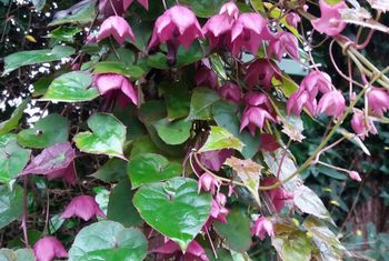 Een paar jaar geleden zag ik in de tuin van mijn schoonzus in Chilliwack (bij Vancouver) een klimplant. Ze noemde de eenjarige plant, met prachtige paarse klokjes, de piemelplant… Omdat ik het een erg grappige en mooie klimmer vond, zette ik ‘m op de foto. Eenmaal thuis dacht ik af en toe terug aan haar tuin en de piemelplant. Hoe de plant in werkelijkheid heette, ik had geen idee… Totdat ik in het tijdschrift Groei & Bloei, in een artikel over makkelijke en ‘moeilijke’ zaden, mijn paarse piemelplant op een foto terugzag. Het was dus een ‘Rhodochiton atrosanguineus’, een hele mond vol. En ik kon het zaad bestellen! Zo gezegd, zo gedaan. Het zakje dat arriveerde, was (vond ik) nogal teleurstellend, amper 20 pieppieppiepkleine zaadjes (zo klein als een korrel maanzaad) in een zakje. En dan ook nog in de categorie (aldus G&B) ‘tamelijk moeilijk’. Ik had er weinig fiducie in, want ik ben geen expert in het opkweken van zaden. Vol goede moed ben ik op een middag in februari met pincet en loep heel voorzichtig een paar kleine potjes gaan vullen, bang om met een onhandige niesbui alle zaadjes kwijt te raken. Vervolgens heb ik ze op allerlei manieren vertroeteld, dichtbij de verwarming en met een dosis winterzonneschijn. Daarna afharden, heel voorzichtig, binnen en buiten. Toen kwam het uitpoten, langs een zelf getimmerd rek met fijn kippengaas. Alles verliep voorspoedig, geheel tegen mijn verwachting in. Al snel begonnen ze te klimmen, en toen we in juli na een korte vakantie terugkwamen wemelde het van de prachtige klokjes. Missie geslaagd. Ik liet iedereen mijn piemelplant zien. En nu, 17 december, bloeien de klokjes nog steeds uitbundig. Ik weet niet hoe dat kan, want de bloeitijd zou in september voorbij zijn. Ik ben dus best wel trots! Of gewoon beginnersgeluk.