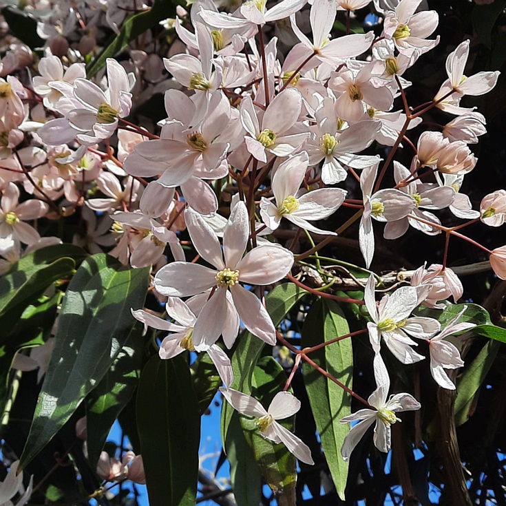 Nu in bloei: Clematis armandii 'Apple Blossom' ![]()