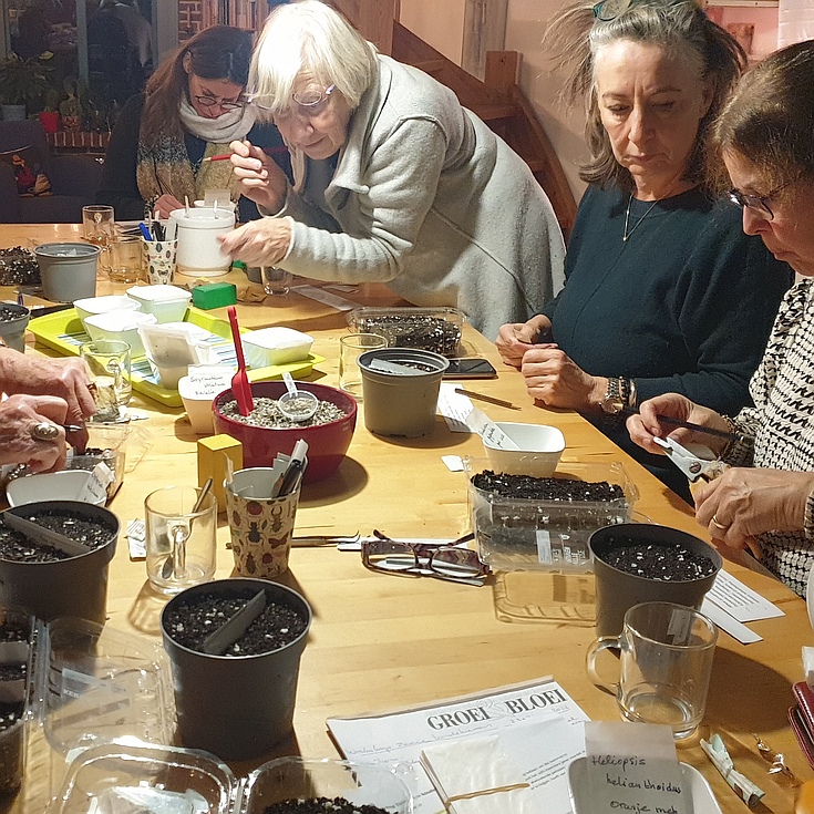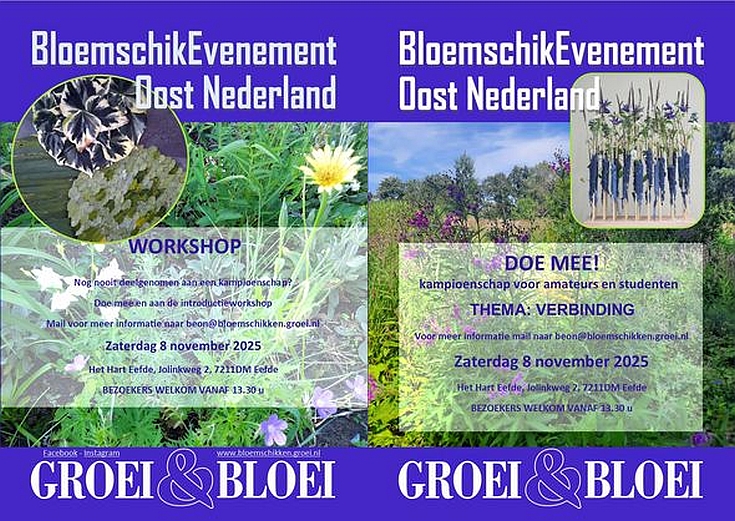 oktober pompoenentijd ![]() Beste Groei&Bloeiers en andere tuinliefhebbersDe (meteorologische) herfst begon op 1 september en voor onze vereniging betekent dat het begin van het lezingenseizoen. Peter Knippels trapte af met een goedbezochte lezing over bloembollen hot-spots all over the world. Zelf kon ik er – door mijn vakantie – niet bij zijn, maar via Leontine kreeg ik gelukkig zijn “Handboek kweken van bollen in kamer en kas”. Leuk om met een aantal soorten die hij beschrijft aan de gang te gaan. Groei & Bloei Wageningen e.o. was ook present op de jaarlijkse Molenmarkt (zaterdag 13 september). Een drukbezochte en gezellige markt, zo vernam ik via de mail en whatsapp. Greet, bedankt voor de coördinatie van dit PR-evenement! En alle andere betrokken vrijwilligers: bedankt voor jullie inzet bij het opbouwen en afbreken van de Groei & Bloei-kraam en het – in ploegendienst – bemensen van onze stand! Ook de leden die plantjes inbrachten voor de verkoop: enorm bedankt voor jullie bijdrage! Verder vond in september de workshop “Bloemschikken in herfstsfeer” plaats, één van de vier themaworkshops die ons lid Monique jaarlijks organiseert. Wat een actieve afdeling hebben we toch! Tijdens mijn vakantie bezochten we de Marksburg nabij Koblenz. Dit is het enige middeleeuwse kasteel in het Middel-Rijndal dat nooit verwoest is. Een bezoek aan dit kasteel is zonder meer de moeite waard. Tijdens de rondleiding bezoek je ook de kruidentuin. De tuin is aangelegd binnen de tweede verdedigingsgordel – in jargon ‘dwingel’ genaamd. Toen deze tweede gordel geen functie voor de verdediging had, heeft men hem opgevuld met grond en een kruiden- en groentetuin aangelegd. Er zijn veel kruidentuinen, maar deze is een middeleeuwse tuin die nog steeds in prachtige staat is. De bordjes bij de planten en struiken vermelden de middeleeuwse, Duitse en wetenschappelijke naam. Grappig te zien dat in de wetenschappelijke naam uit de 18e eeuw de middeleeuwse benaming vaak terugkomt. Nu – uitgerust – weer tijd voor Groei & Bloei. Zie ik jullie op de stekken- en plantenruilbeurs komende zaterdag? En anders hopelijk op onze gezamenlijke lezing met Floralia en Groei & Bloei Ede later deze maand. In deze nieuwsbrief lees je er meer over. Graag tot binnenkort! Ineke Jenniskens, voorzitter ![]() Zaterdag 4 oktober najaarsruilbeursOp 4 oktober ben je weer welkom met zaden, stekken, bollen en knollen en planten voor binnen en buiten. Ook ‘groenboeken’/tuinbladen en gebruikt, goed gereedschap kun je mee brengen. Om 9:30 uur begint het ‘ruilen’. Kom wel op tijd, anders is alles al weg! Ook voor niet-leden is deze beurs gratis, ook als je zelf geen planten kunt inbrengen. De koffie staat klaar! NB De Generaal Foulkesweg is die dag afgesloten voor verkeer ivm een evenement. Het is niet duidelijk vanaf hoe laat. Kom dus op de fiets. Of kom vroeg, en parkeer in een zijstraat. Inbreng planten, stekken, zaden, tuinboeken enz.: vanaf 9:00 uur ![]() Zaterdag 18 oktober Bomenwandeling Arboretum De DreyenOp 18 oktober gaan we in de herkansing voor de bomenwandeling in het Arboretum De Dreyen. De eerdere versie in februari was al gauw vol. Dus hebben we nu een tweede georganiseerd. Deze heeft plaats voor 20 deelnemers, er zijn nog ca 10 plaatsen beschikbaar. Dus wees er snel bij. Aanmelden is verplicht, omdat de groep niet te groot mag zijn. De Dreyen is begonnen als proef- en instructietuin voor studenten aan de tuinbouwschool. Het schetsontwerp hiervoor is van L.A. Springer en dateert uit 1896. Rond 1920 besloot de toenmalige Landbouwhogeschool het gebied te ontwikkelen tot een campus. De instructietuin verdween en de tuin werd een arboretum vooral voor bosbouwstudenten. In 2010 werden de twee Arboreta afgestoten. De Dreyen werd verkocht aan de heer Dijkman, het Botanisch laboratorium werd een beeldenmuseum, de tuin een wandelpark met nog veel oude maar ook veel nieuwe bomen en struiken. Datum en locatie: zaterdag 18 oktober 2025, 13.30 - 15.00 uur De eerdere bomenwandeling in Arboretum De Dreyen was in februari 2025. ![]() Woensdag 22 oktober lezing ‘Het leuke landleven’ door Henny van der WiltHenny van der Wilt is 30 jaar als hovenier in dienst bij Kasteel-Museum Sypesteyn te Loosdrecht. Wij kennen haar al als enthousiaste spreker over tuinenreizen op de fiets. Ditmaal is haar onderwerp de moestuin: zaaien, planten, oogsten oftewel... moestuinieren met 'hart en ziel’ Kosten: € 4, leden gratis De Molenmarkt van 13 september j.l.De Molenmarkt van 13 september j.l., was heel gezellig. Er was veel belangstelling en we hebben 123 plantjes verkocht. Wat een geluk met het weer; pas toen iedereen had opgeruimd barstte het onweer los. ![]() Donderdag 6 november Lezing en prijsuitreiking voortuinkeuringenElke jaar doorkruisen teams van tuinkeurders drie keer hun wijk: voorjaar, zomer en herfst. Ze geven punten aan de mooiste voortuinen, mits zichtbaar vanaf de openbare weg. Ook balkons en geveltuinen worden gekeurd. Er wordt gelet op algemene indruk, kleur, biodiversiteit en onderhoud. En zo komen er winnaars uit de bus. De gemeente Wageningen stelt veel prijs op het verfraaien en vergroenen van Wageningen en zorgt voor subsidie en de prijsuitreiking. De prijsuitreiking vindt plaats op donderdagavond 6 november. Ook dit jaar weer in Tuindorp Wageningen. Prijswinnaars krijgen een persoonlijke uitnodiging. Locatie: Tuindorp, Floralaan 20-B, 6707 HR Wageningen de tuinkeurders in actie ![]() Bloemschik Evenement Oost Nederland op zaterdag 8 novemberStel je voor: een dag vol nieuwe gezichten, inspirerende verhalen en de kans om deel uit te maken van iets bijzonders. Wat als je gaat en het blijkt een van de beste beslissingen te zijn? Je arriveert op de locatie en wordt verwelkomd door een warme en enthousiaste sfeer. Overal om je heen zijn mensen die dezelfde passie delen, of die nieuwsgierig zijn om iets nieuws te leren. Je voelt je meteen op je gemak en merkt dat de gesprekken gemakkelijk en interessant zijn.